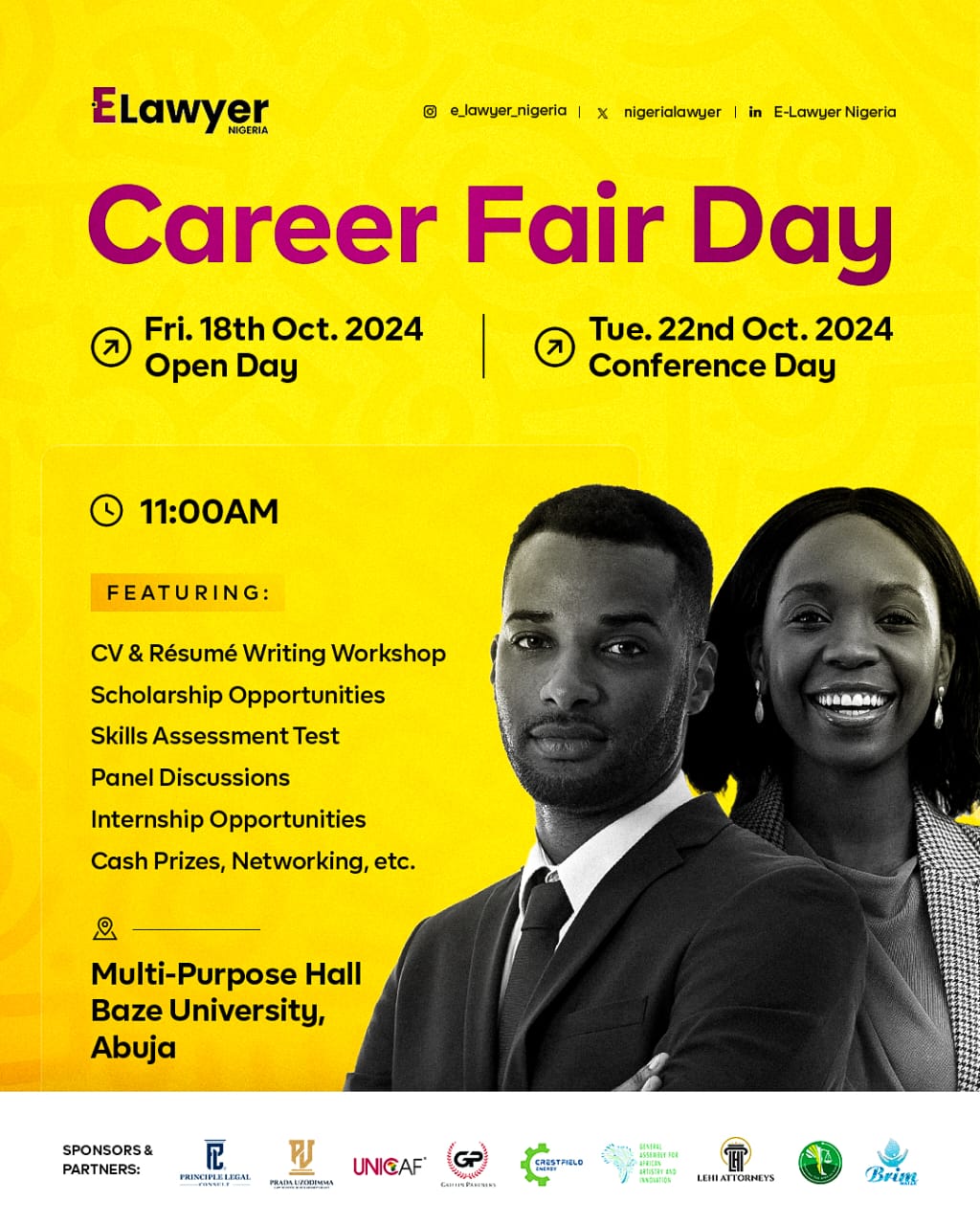 The wait is over! Today, Friday, 18th October 2024, marks the long-anticipated E-Lawyer Career Fair Open Day at Baze University, Abuja. This event promises to be an unforgettable experience for law students and young professionals ready to chart a course toward a successful career in the legal field.
