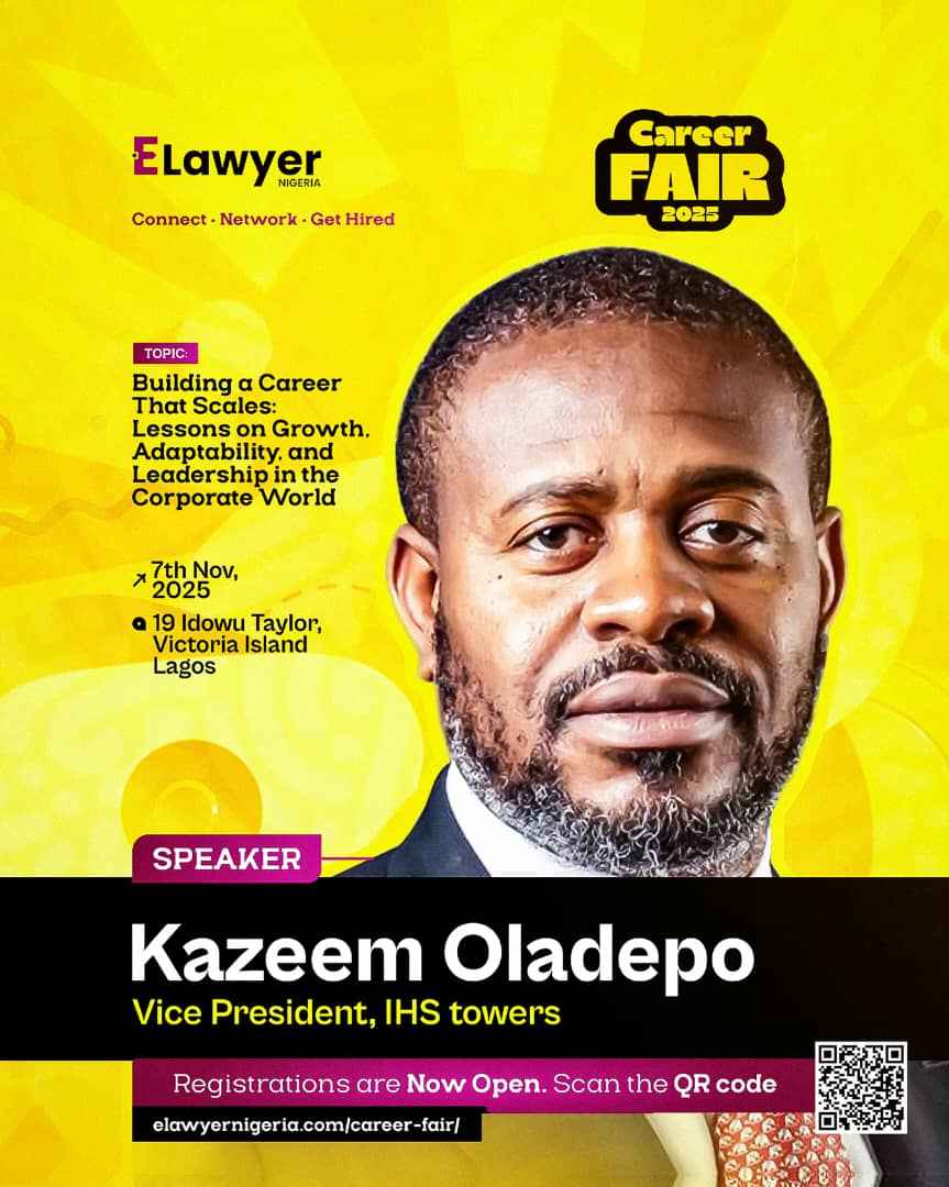 We are bringing you another power session at the ELawyer Nigeria Career Fair 2025 with the man who scales careers for a living: Mr. Kazeem Oladepo, Vice President at IHS Towers!